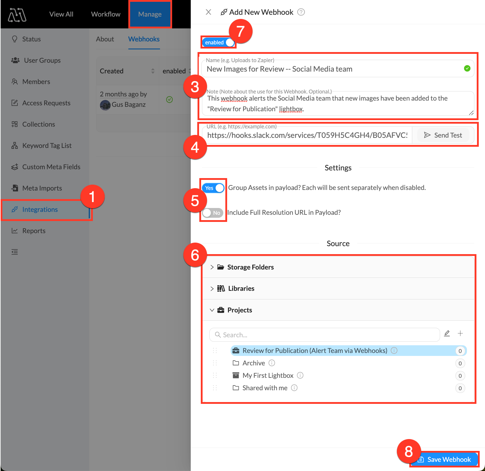 - Include Full Resolution URL in Payload? - When turned on, a URL for a full-resolution copy of an image file will be sent. When turned off, only a downsized 1200-px copy will be included.