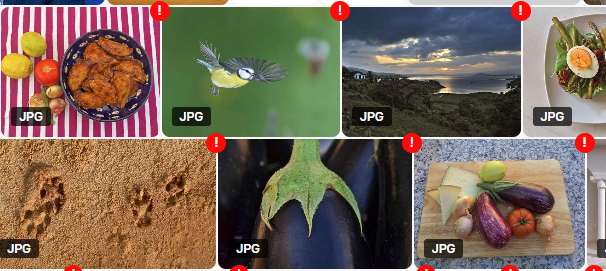 If the storage is disconnected or sync failure occurs, you will see a red exclamation mark on the Picvario asset thumbnails. This means that the connection with the storage has been interrupted and you will not be able to download the original files.