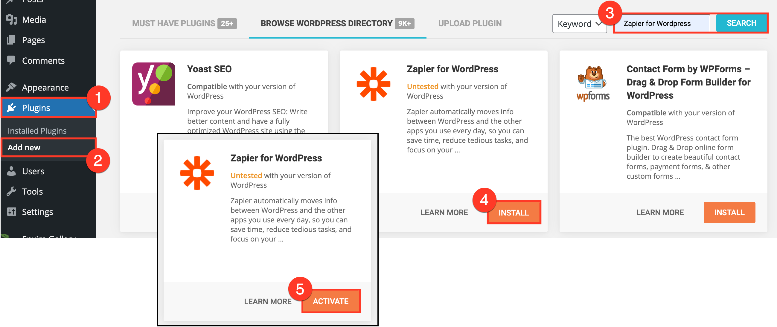 - Search for Zapier for Wordpress.